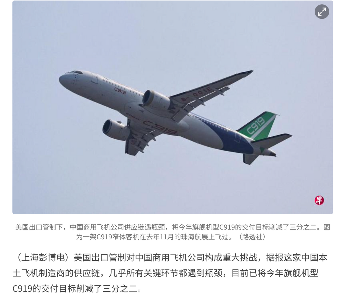 彭博社援引消息称,美国对发动机等关键航空零部件的禁运,将让C919客机今年的交付数量直降2/3,从原计划的75架降至25架。知情人士声称,C919供应链的几乎所有关键环节都出现了瓶颈,阻碍了其稳定生产的能力。这个消息在美欧、日韩以及印度等社媒网络引起激烈讨论,其中不乏一些网民发表各种幸灾乐祸的评论。但是,情况很快出现一个大反转。今日俄罗斯(RT)等俄媒报道,俄第一副总理曼图罗夫向记者证实,俄方已经向东方伙伴通报,准备好向其国产客机供应零部件,包括复合材料机翼和重型发动机。此外俄方还准备了不止一种备用方案,以在其“擅长的领域”与东方伙伴当前乃至今后要生产的宽体客机进行合作。俄罗斯在关键时刻的硬核表态,让白宫方面懵了,因为通过对华在航空制造领域卡脖子而令其屈服,是川普亲自定下的策略。俄方在这个时候对华伸出援手,被西方媒体称为是“直接打脸”,让川普本来就面临搁浅的调停俄乌冲突政策“雪上加霜”。彭博援引华盛顿消息人士称,白宫高级幕僚私下抱怨,俄方此举“严重削弱”美方的对华出口限制效果。虽然俄罗斯方面这次表现得比较给力,更让美方吃了个瘪,但还是要说清楚一个问题,即从曼图罗夫的完整讲话可以看出,俄方主要针对的是C929宽体客机项目,它其实本来就是中俄合作项目,只不过在俄乌冲突爆发后,俄方以一些理由退出了。当然俄罗斯的这个态度本身就是对我方力挺的一种表现,也在国际舆论场上形成了正向效应。综合国内权威消息来看,目前C919供应链上早已有所规划的国产备份零部件供应方,全都在快马加鞭地赶工,尤其是国产CJ-1000A发动机已进入试飞验证阶段,让C919和C929都用上“中国心”的日子预计不久后就会到来。所以不管从哪方面看,C919遇到的困难都是暂时的。而美方的所谓卡脖子,也注定只有失败这一个结局。